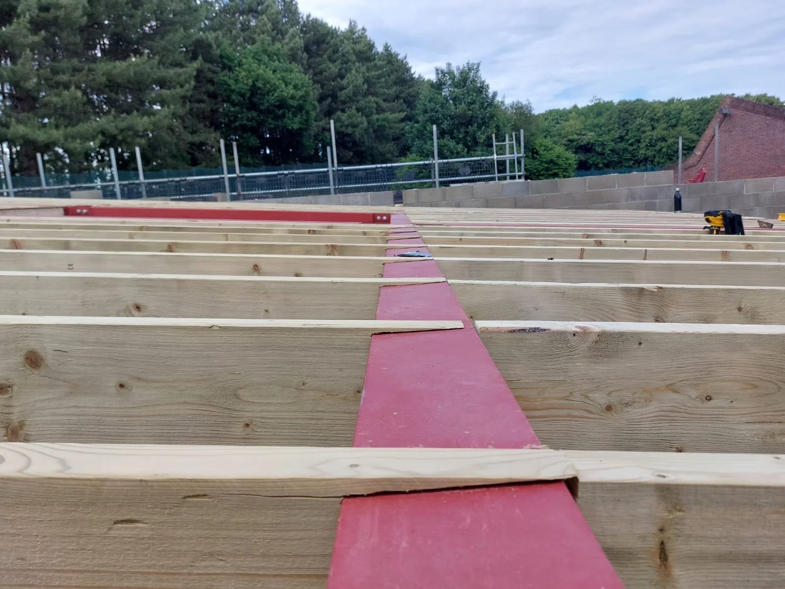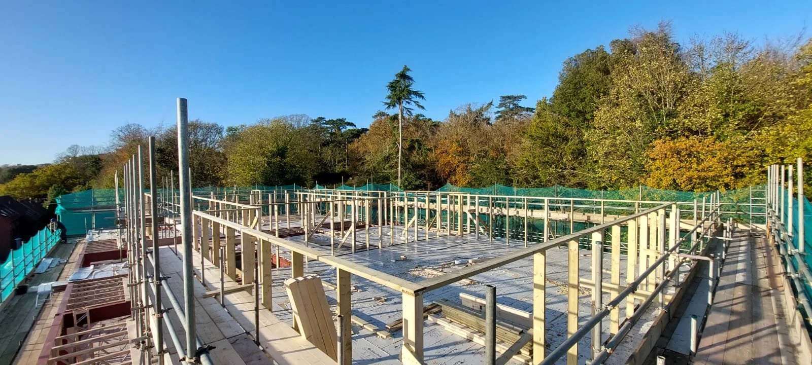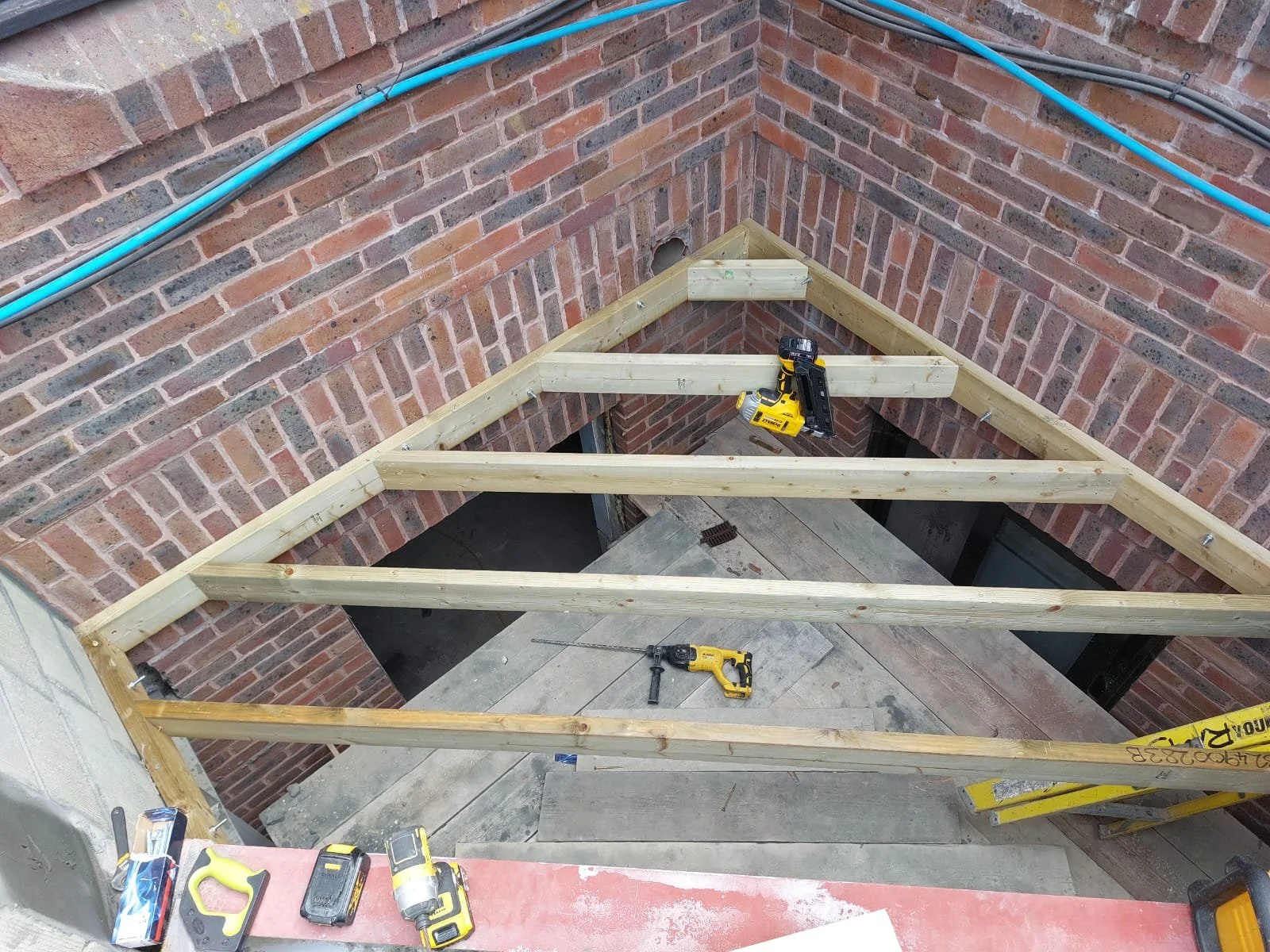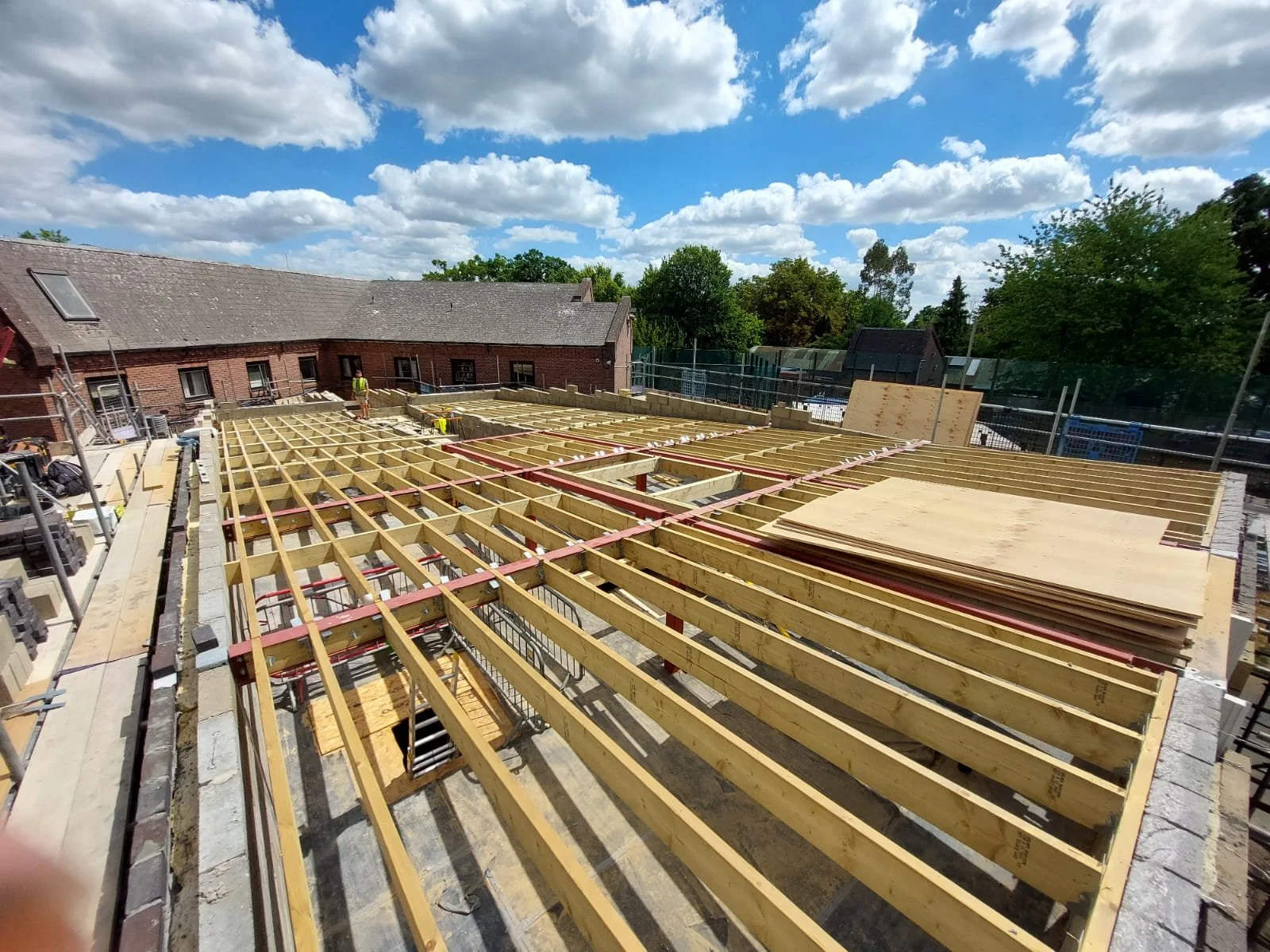 400m2 joist and deck. Two independent timber frame structures and 3 roofs, on the 4th floor in Norwich.