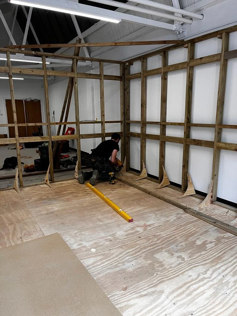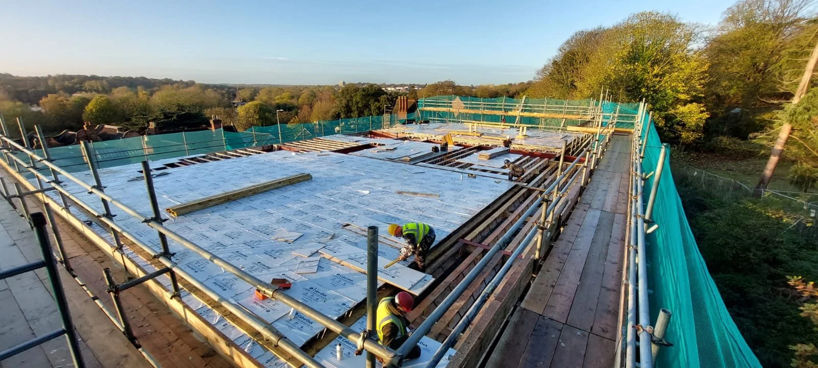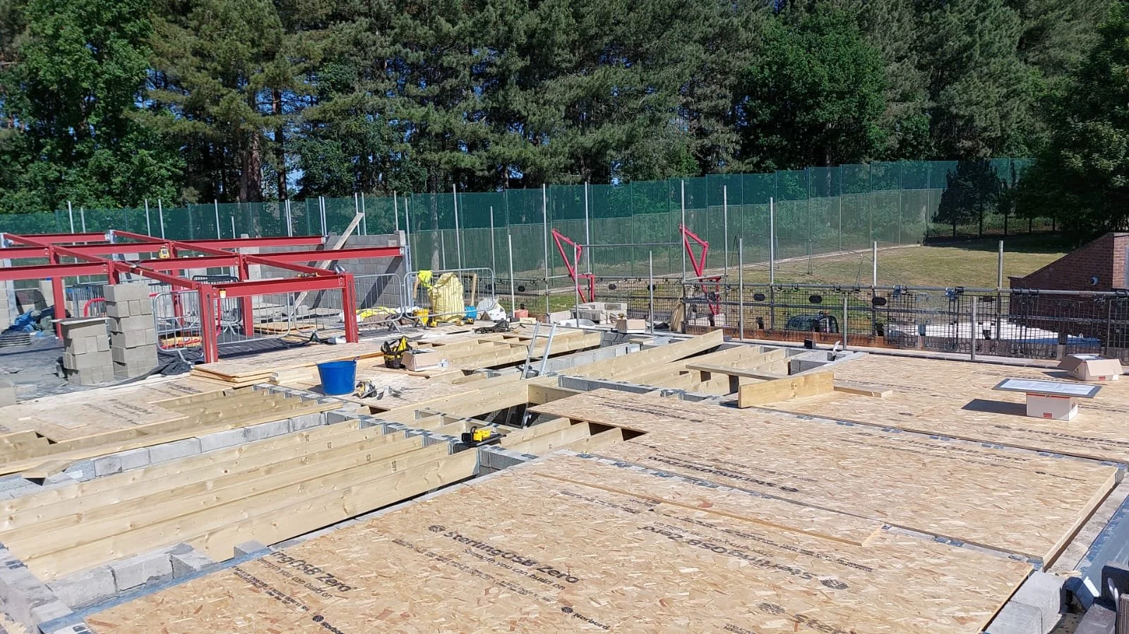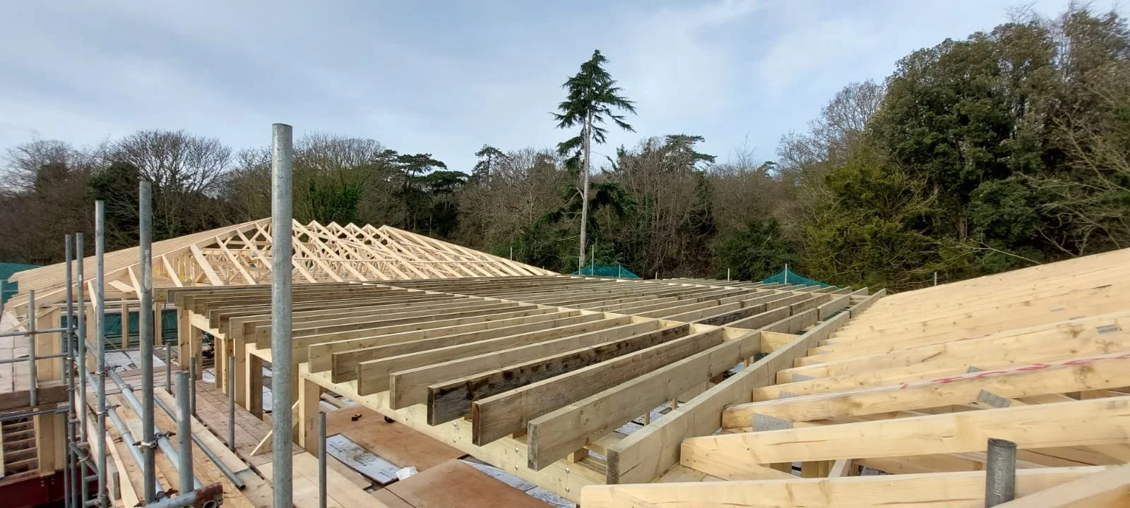 400m2 joist and deck. Two independent timber frame structures and 3 roofs, on the 4th floor in Norwich.