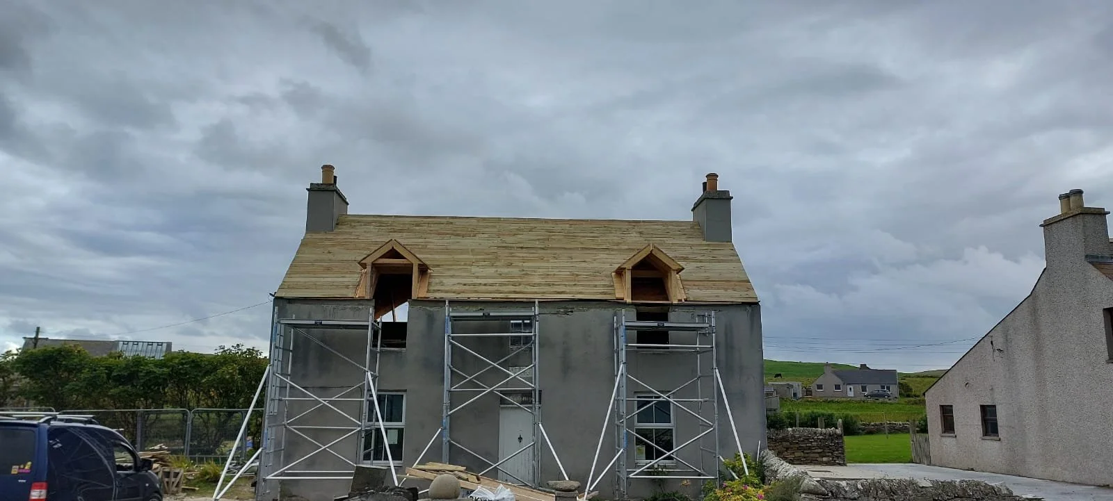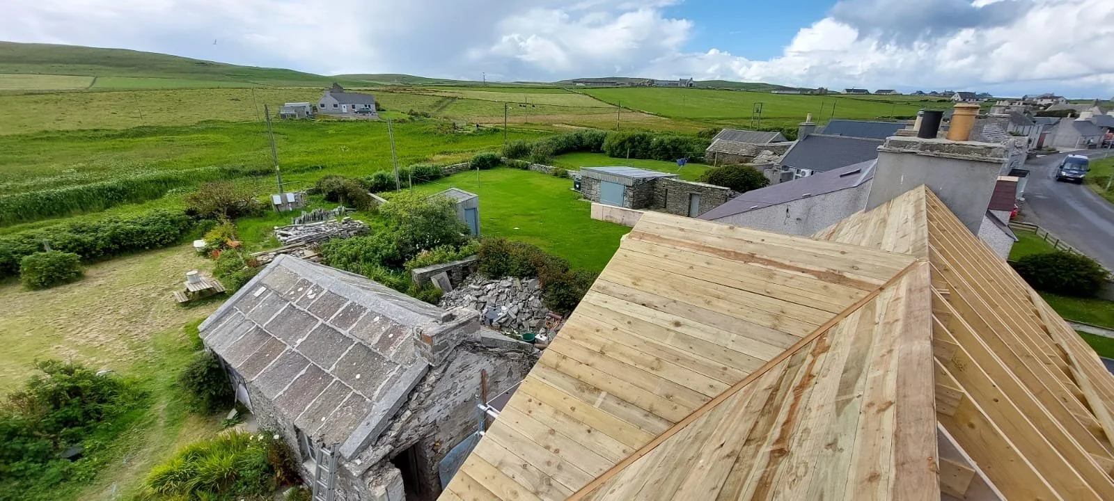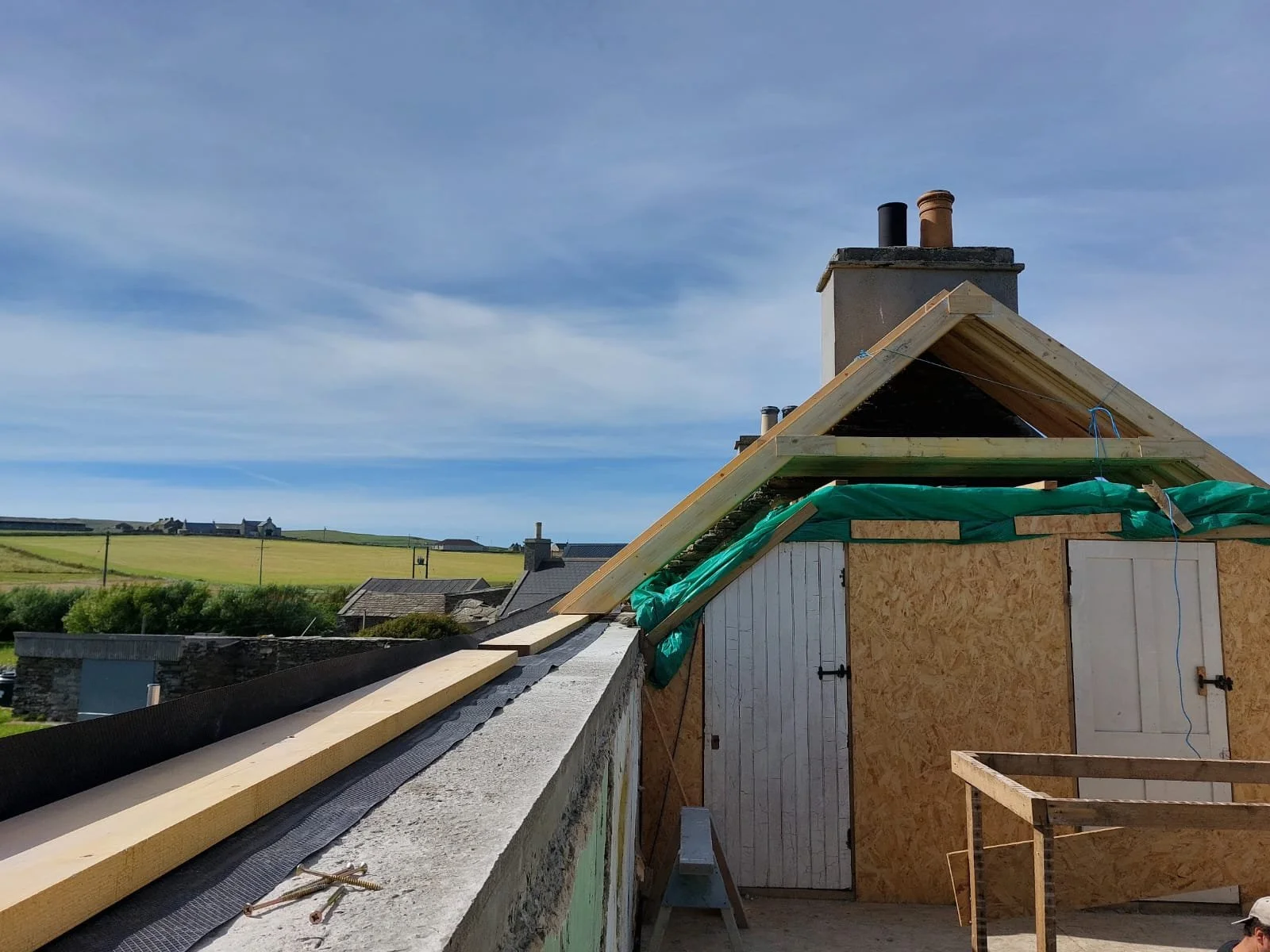 We took a drive up to one of the Island north of Orkney to install a roof in a challenging environment, Great Fun.